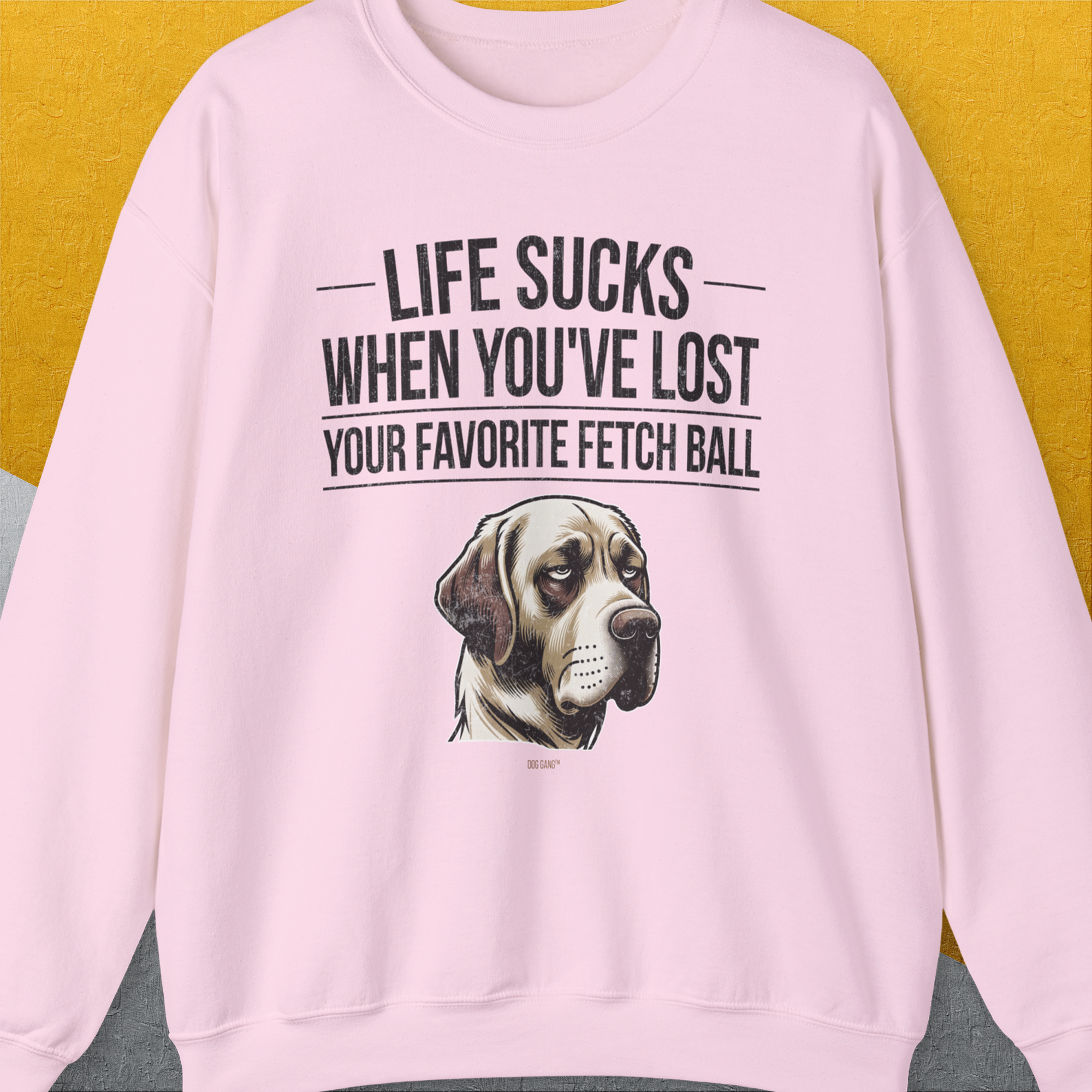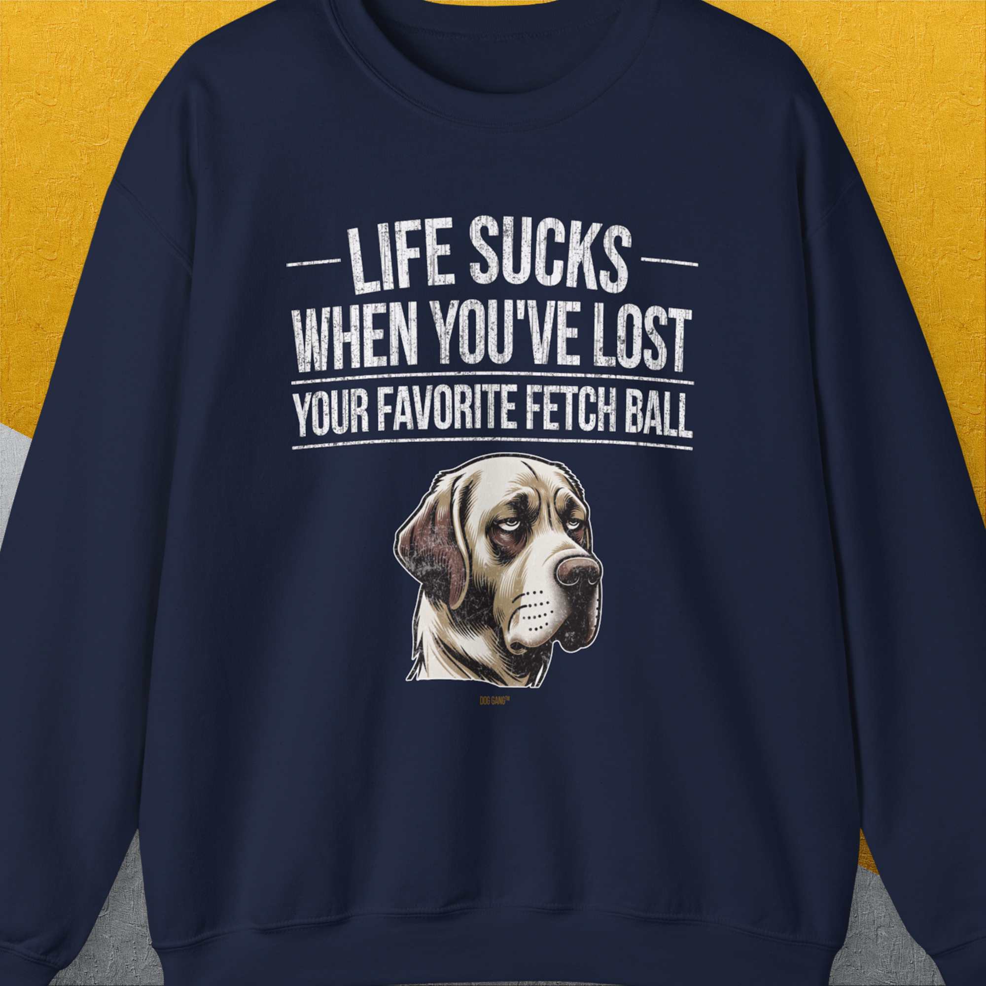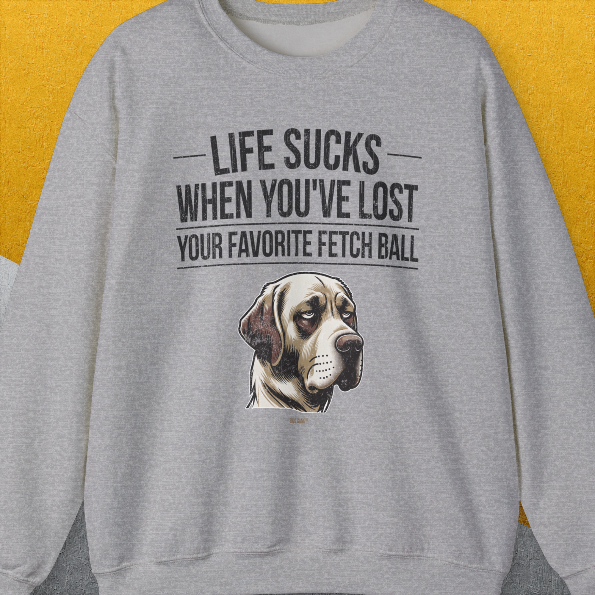 Life Sucks When You've Lost Your Favorite Fetch Ball, Volume 1, Unisex Sweatshirt- funny dog-themed Shirt. Design by Dog Gang