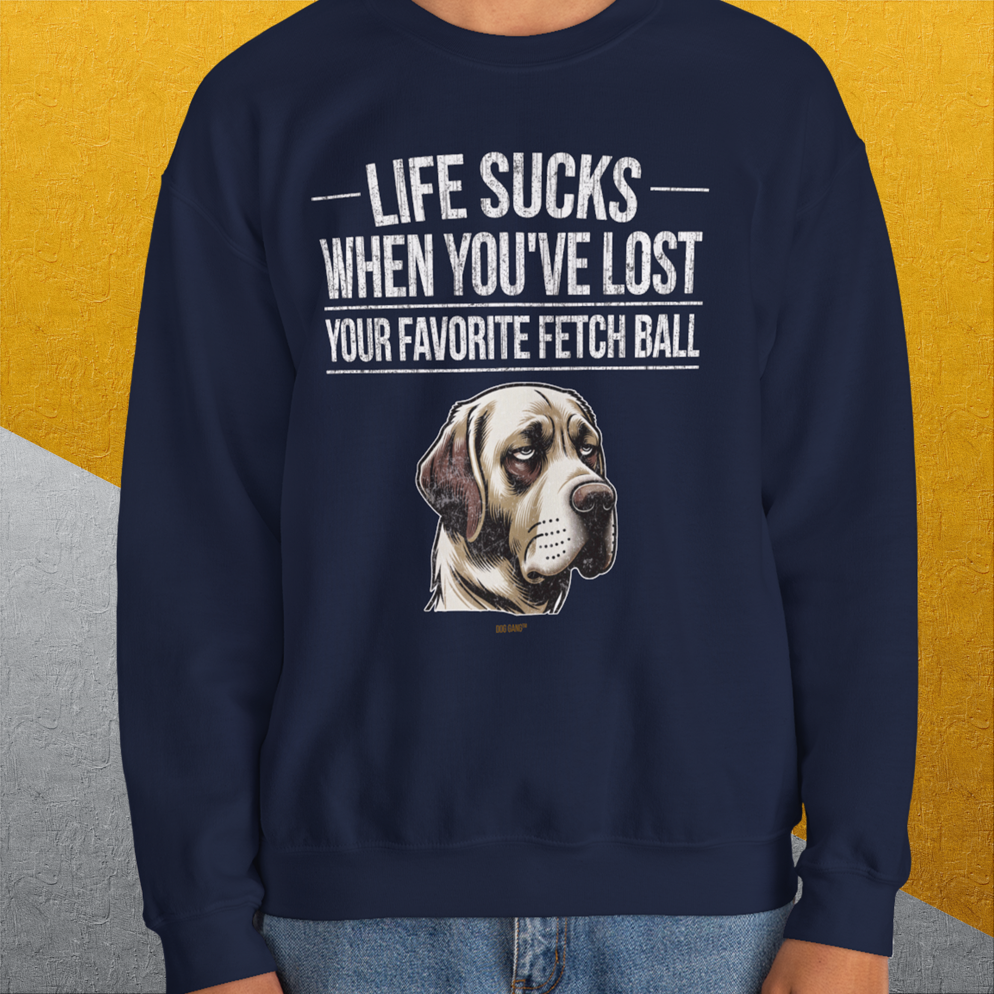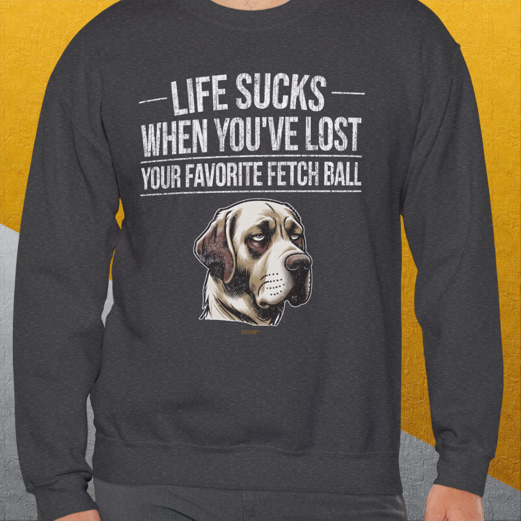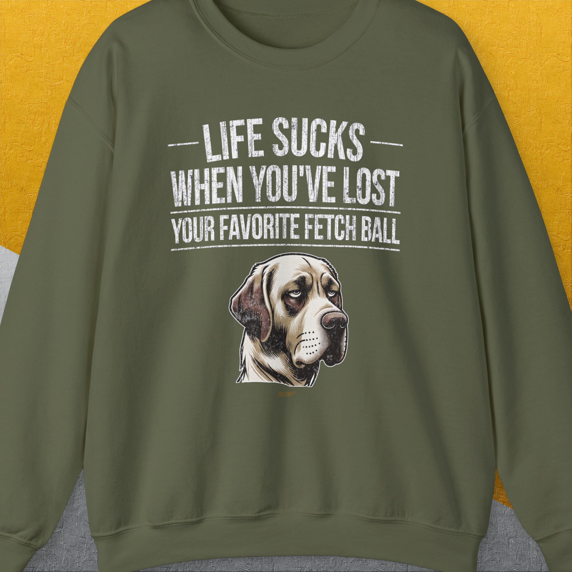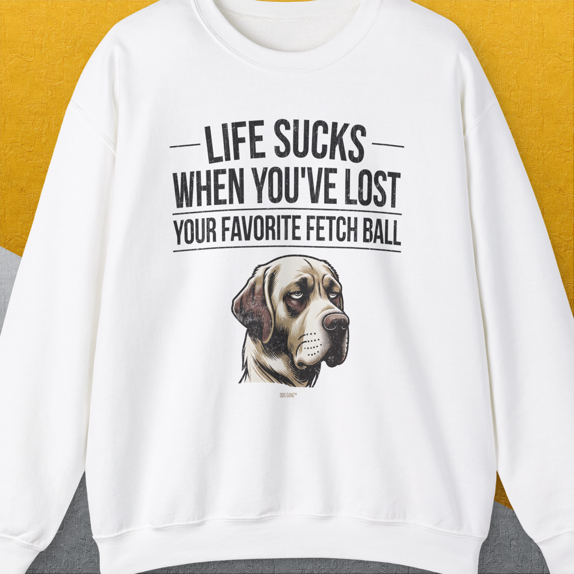 Life Sucks When You've Lost Your Favorite Fetch Ball, Volume 1, Unisex Sweatshirt- funny dog-themed Shirt. Design by Dog Gang
