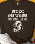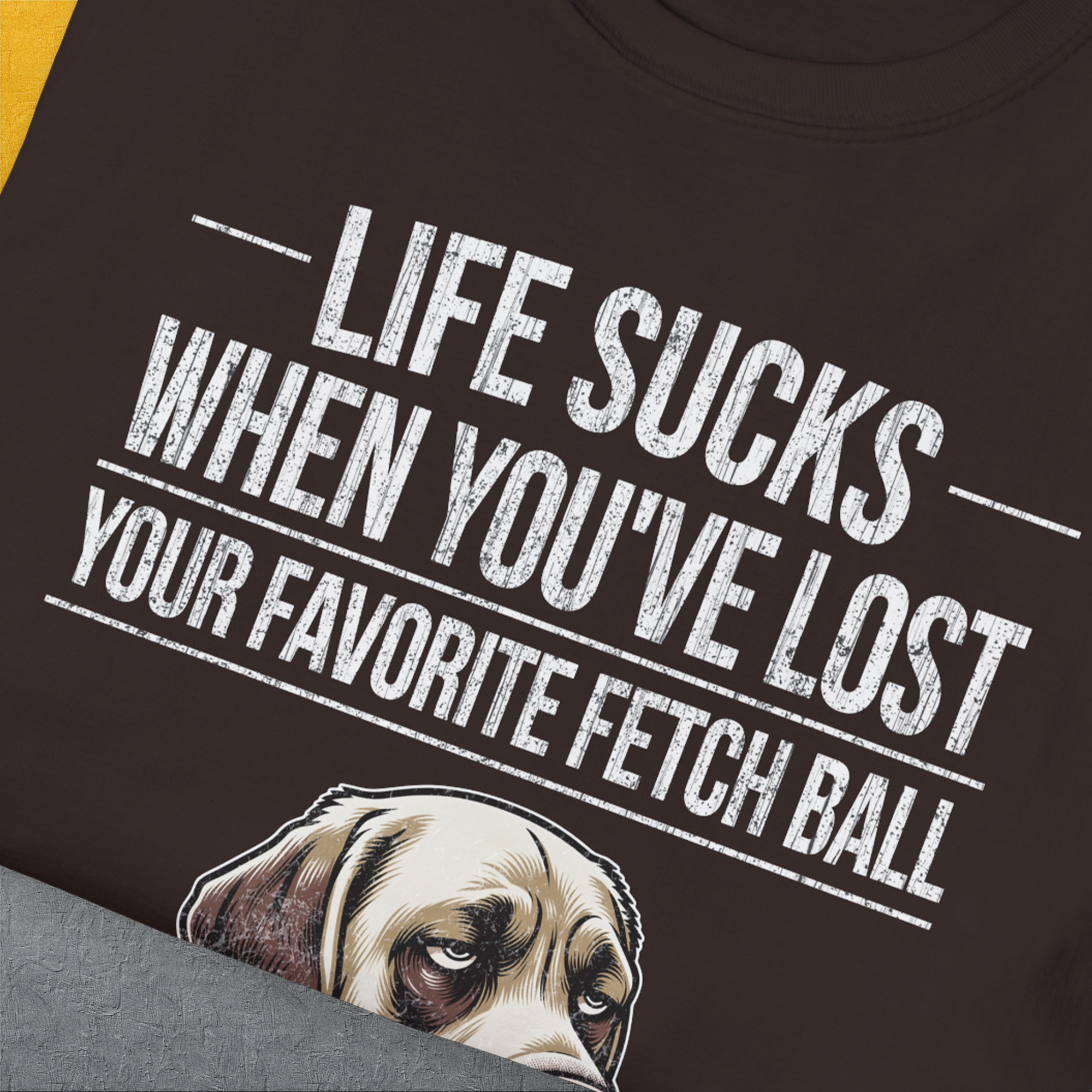 Life Sucks When You've Lost Your Favorite Fetch Ball, Volume 1, Unisex T-Shirt- funny dog-themed Shirt. Design by Dog Gang