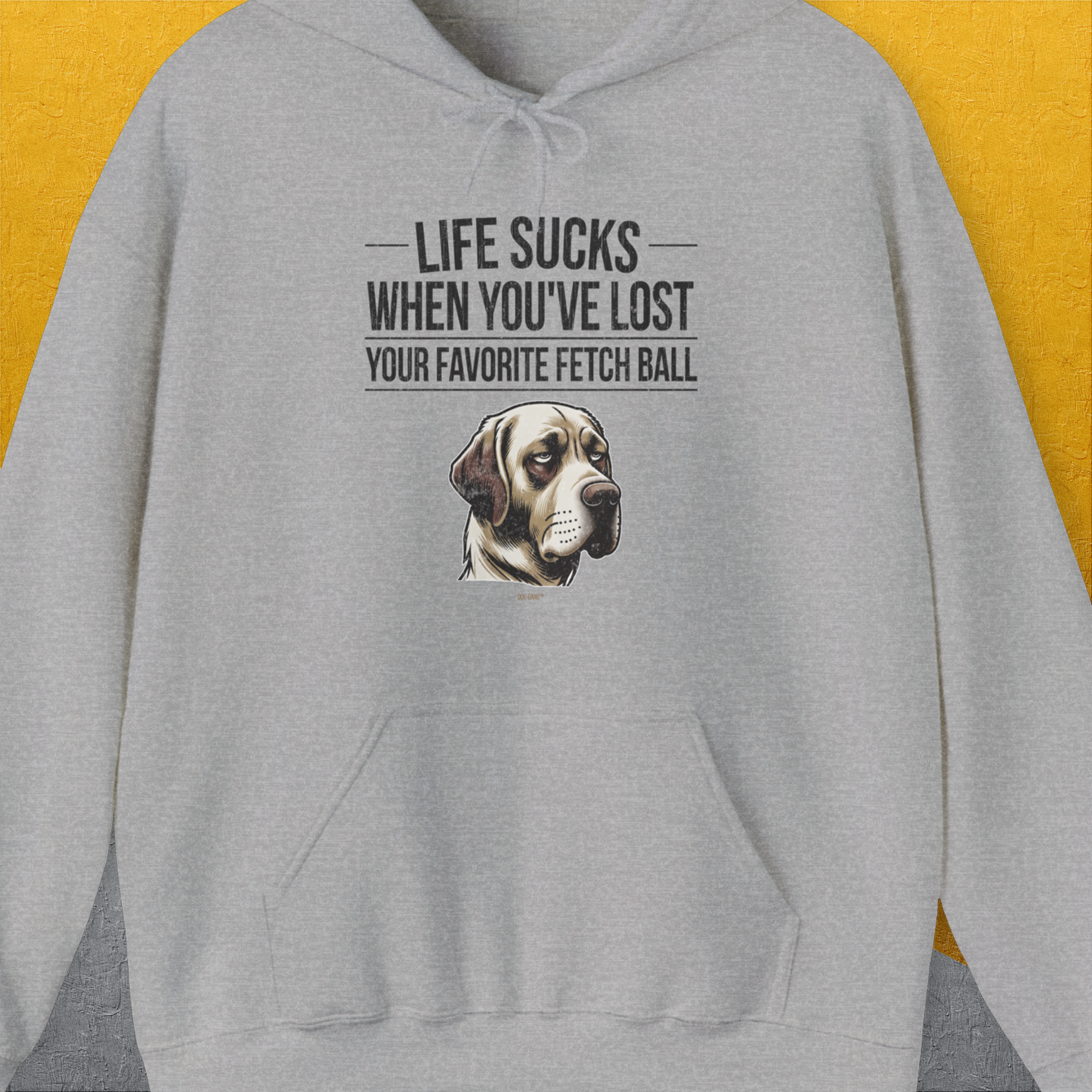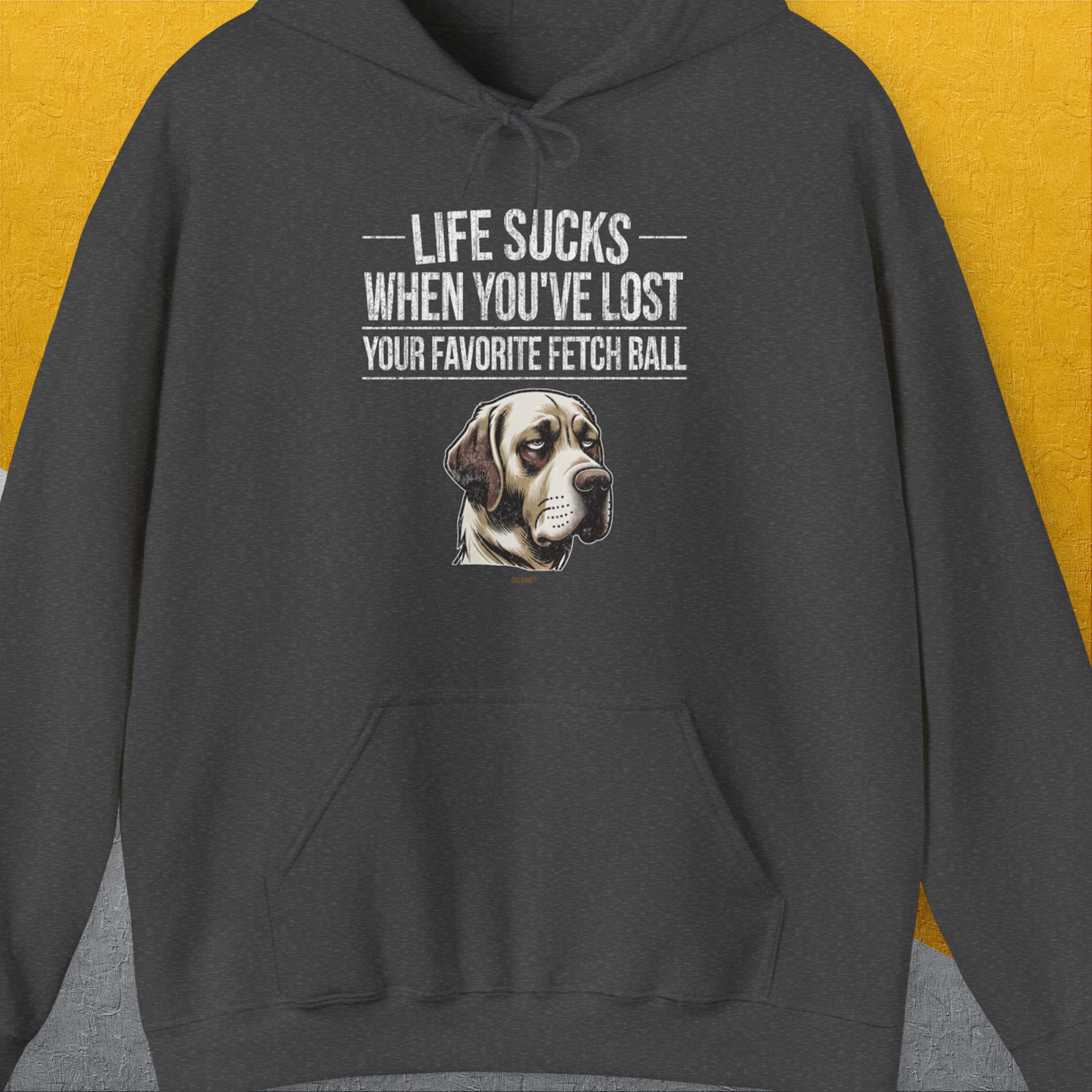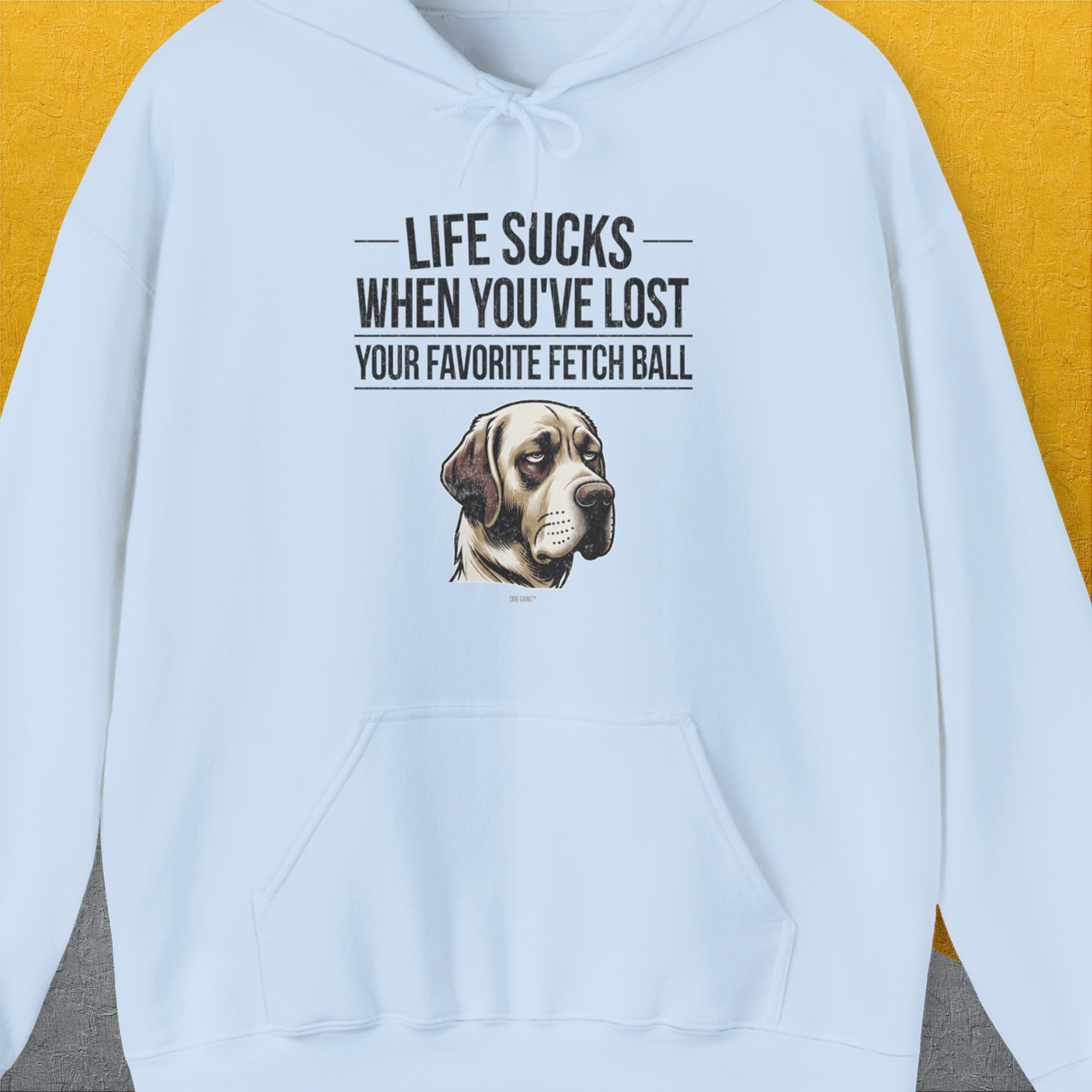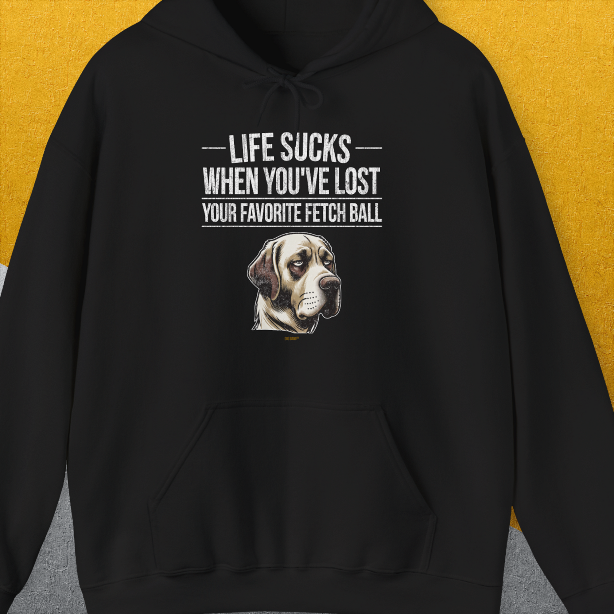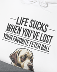 Life Sucks When You've Lost Your Favorite Fetch Ball, Volume 1, Unisex Hoodie- funny dog-themed Shirt. Design by Dog Gang