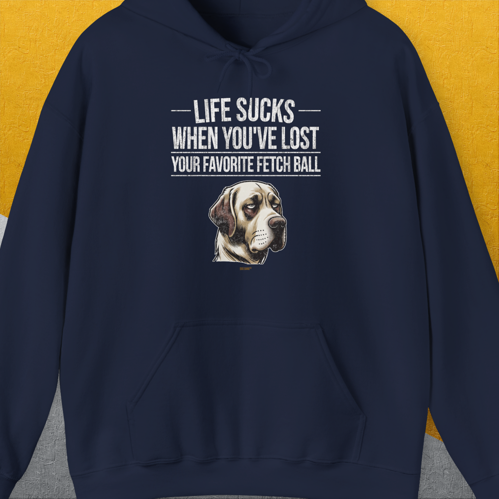 Life Sucks When You've Lost Your Favorite Fetch Ball, Volume 1, Unisex Hoodie-Navy-funny dog lover Shirtdesign by Dog Gang