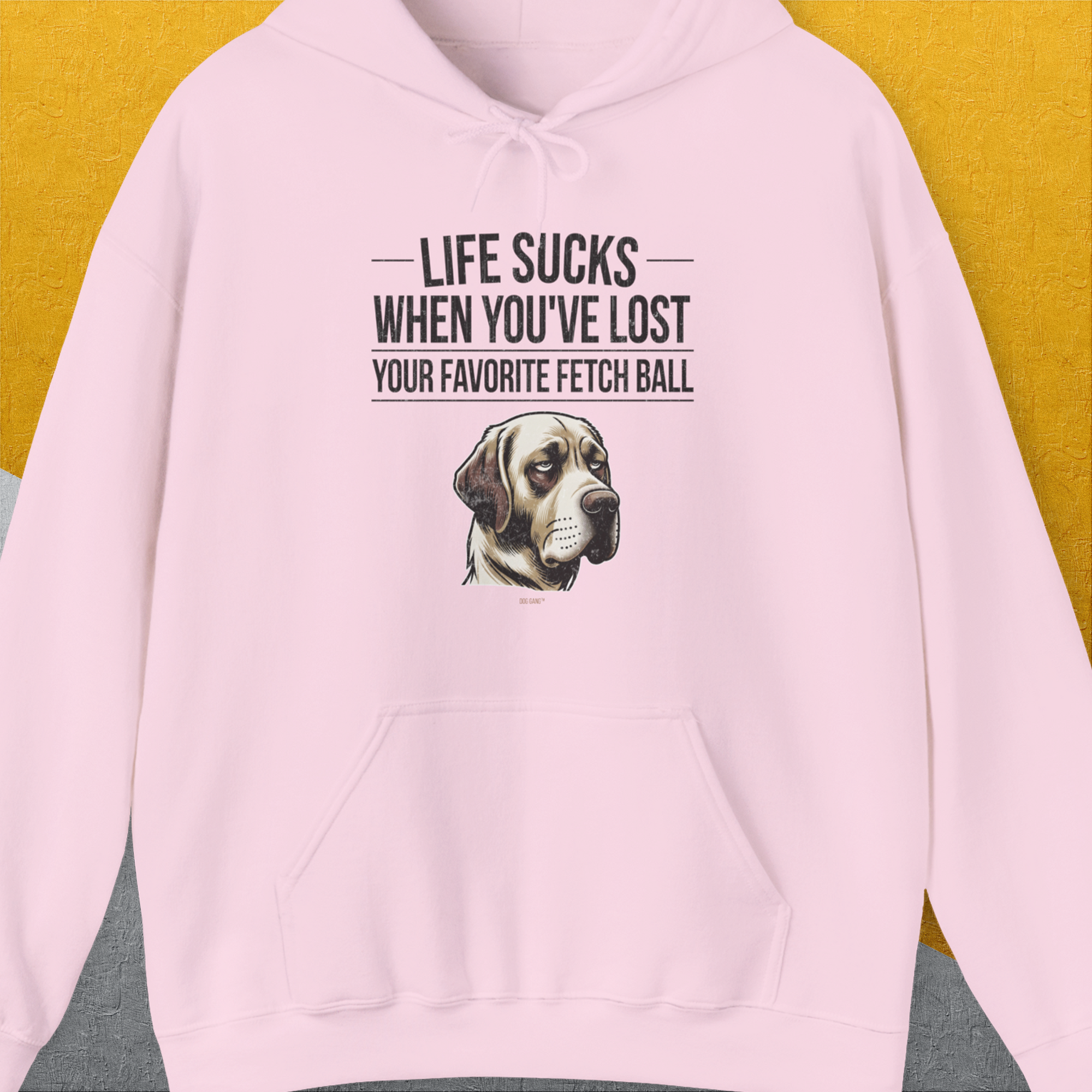 Life Sucks When You've Lost Your Favorite Fetch Ball, Volume 1, Unisex Hoodie-Light Pink-funny dog lover Shirtdesign by Dog Gang