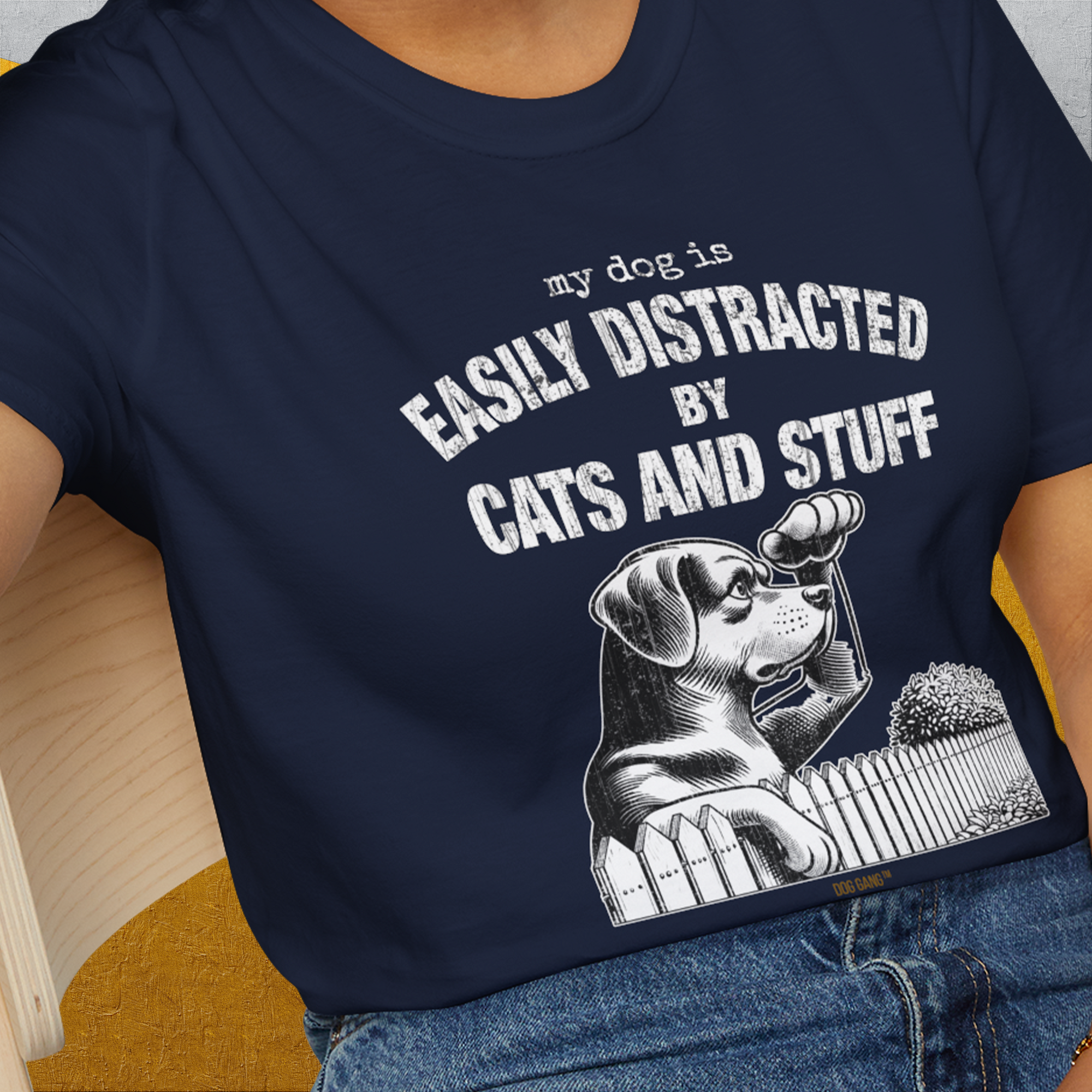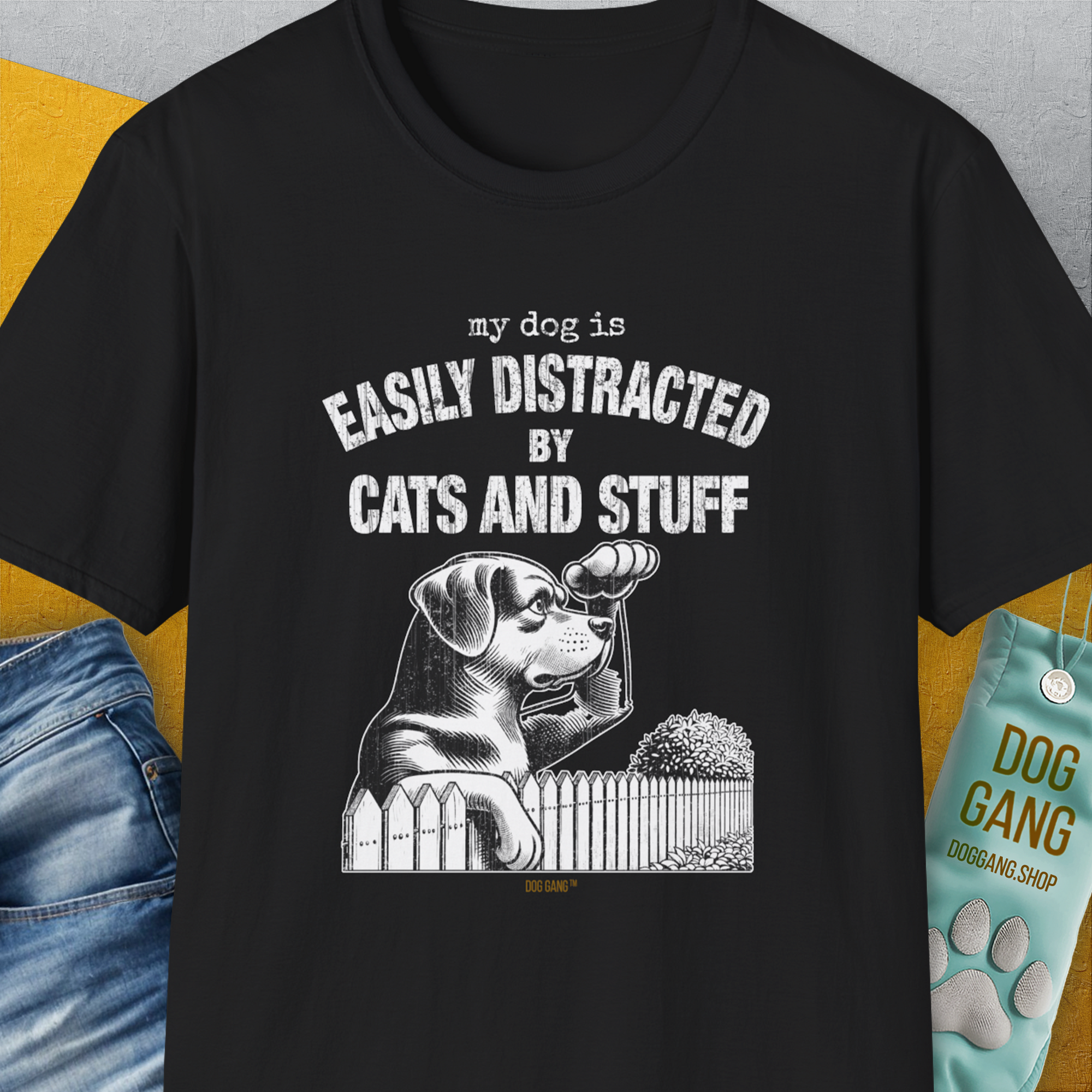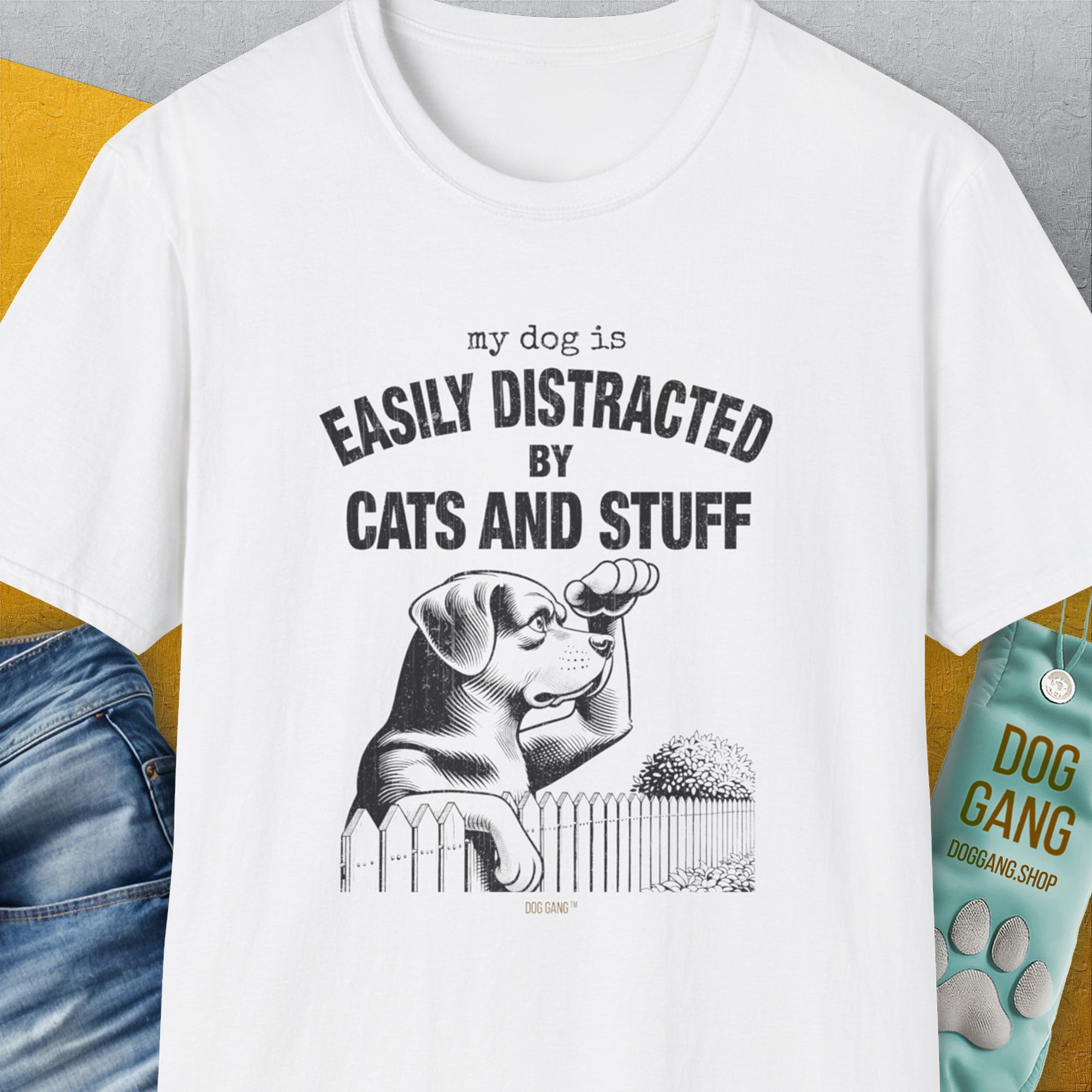 My Dog Is Easily Distracted By - Volume 2: Cats And Stuff, Unisex T-Shirt-, a fun and stylish design for dog lovers from Dog Gang