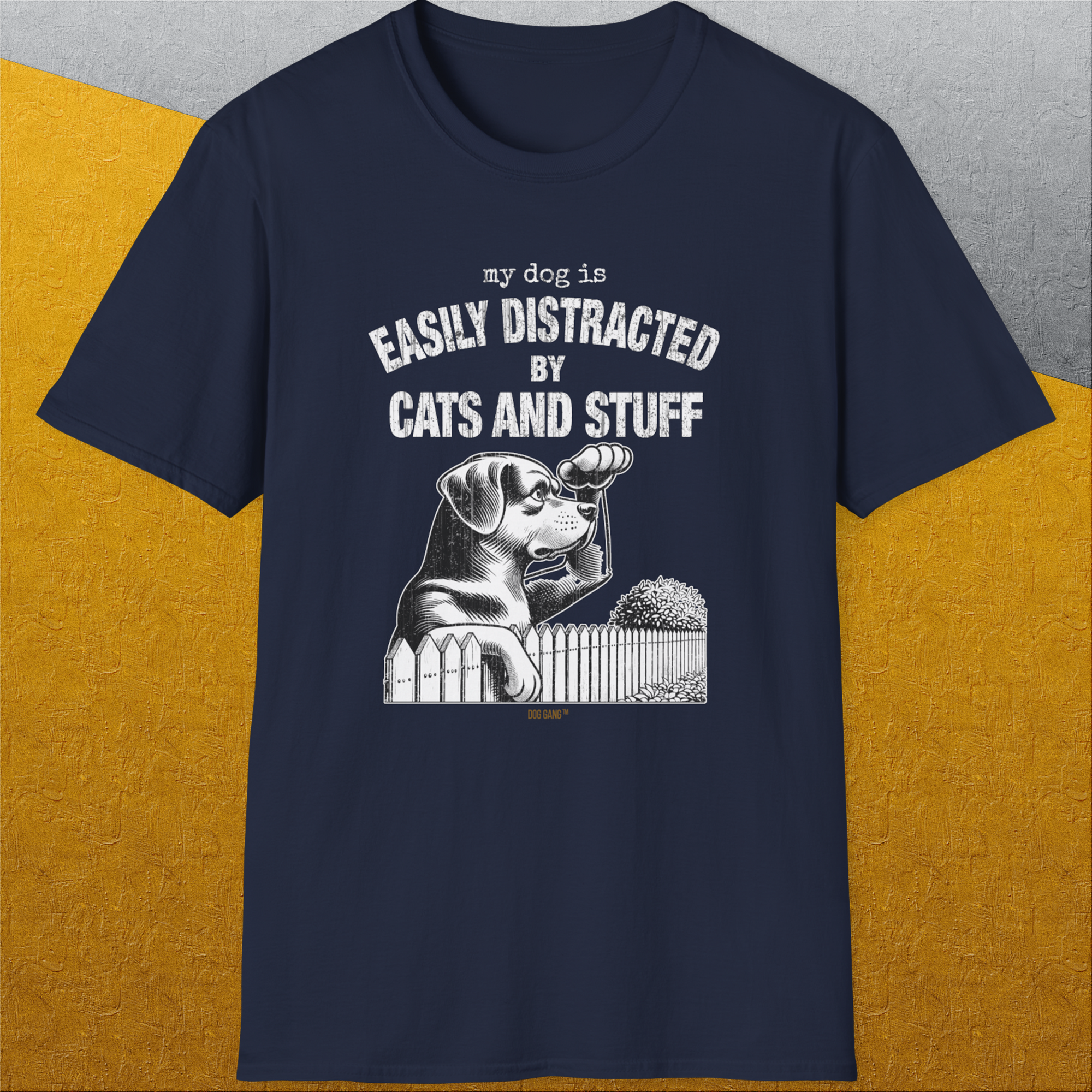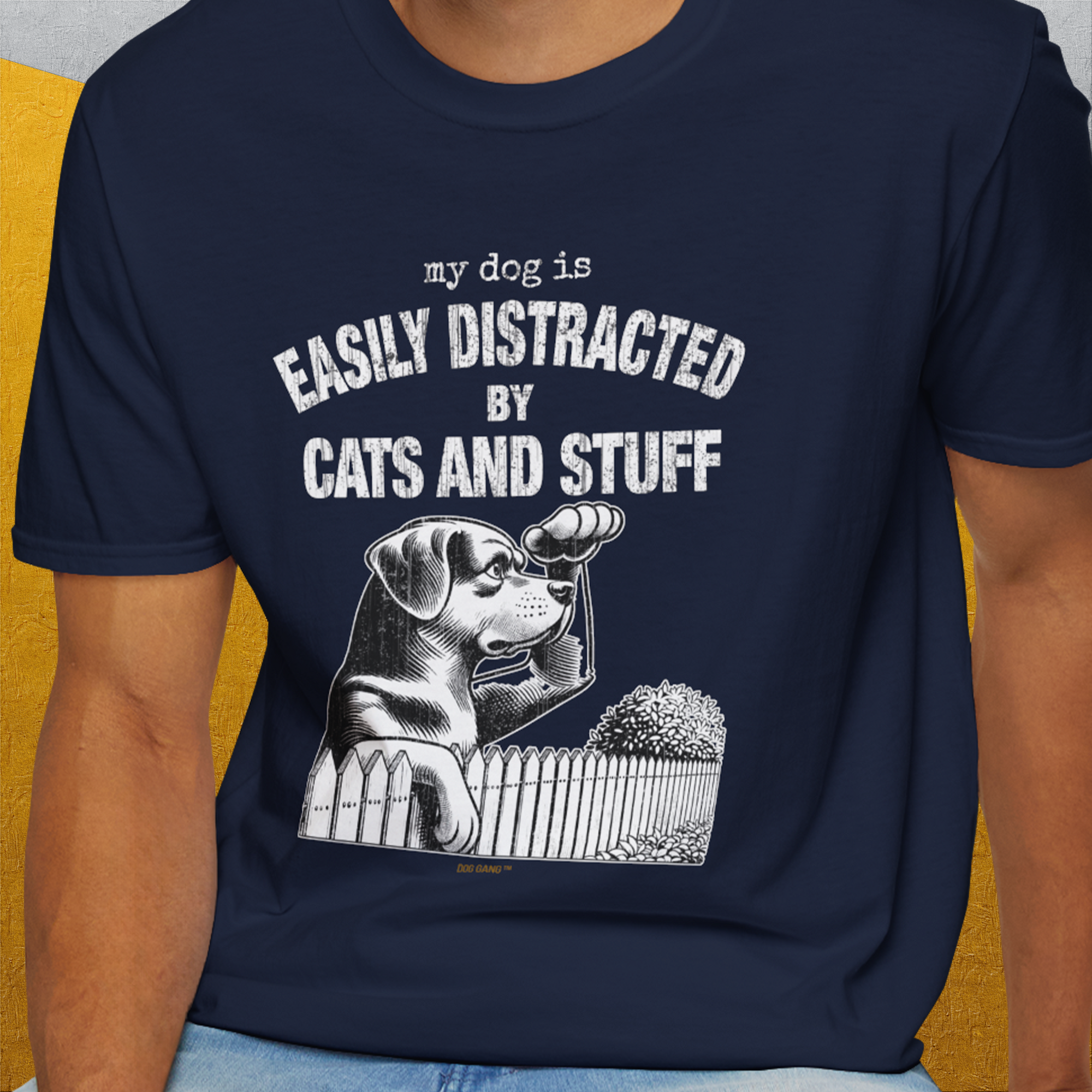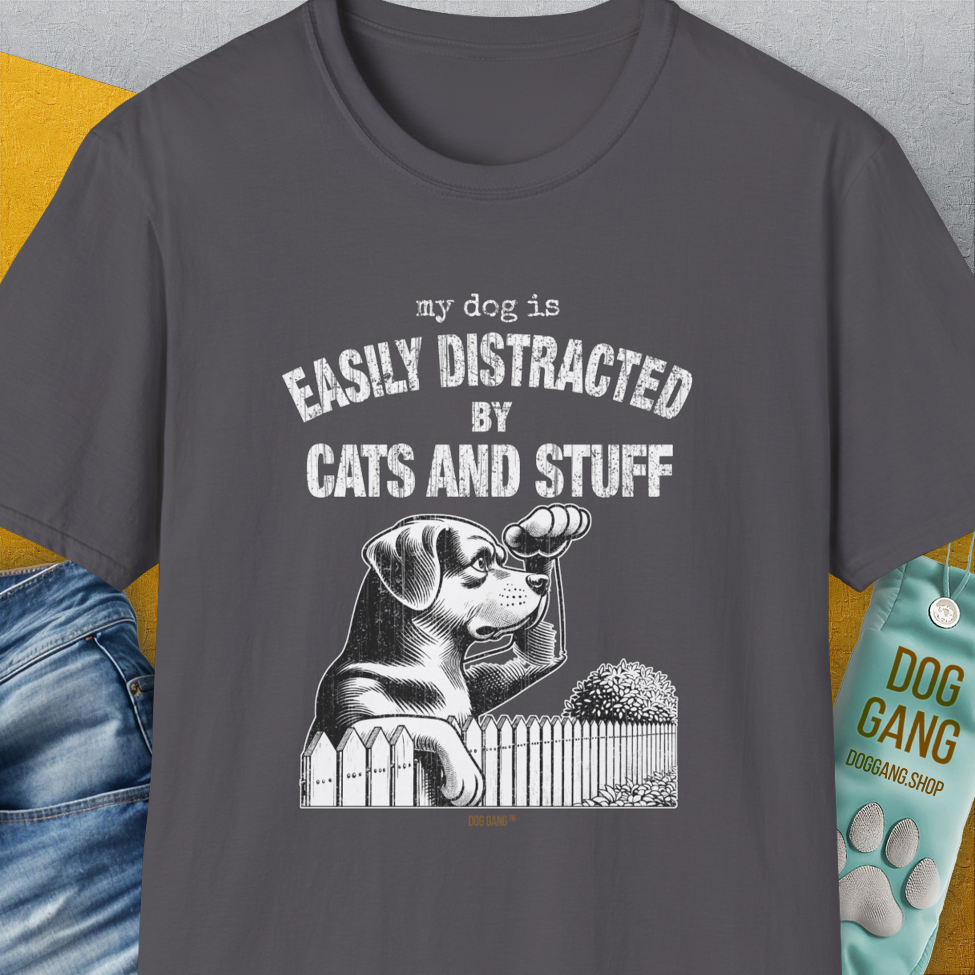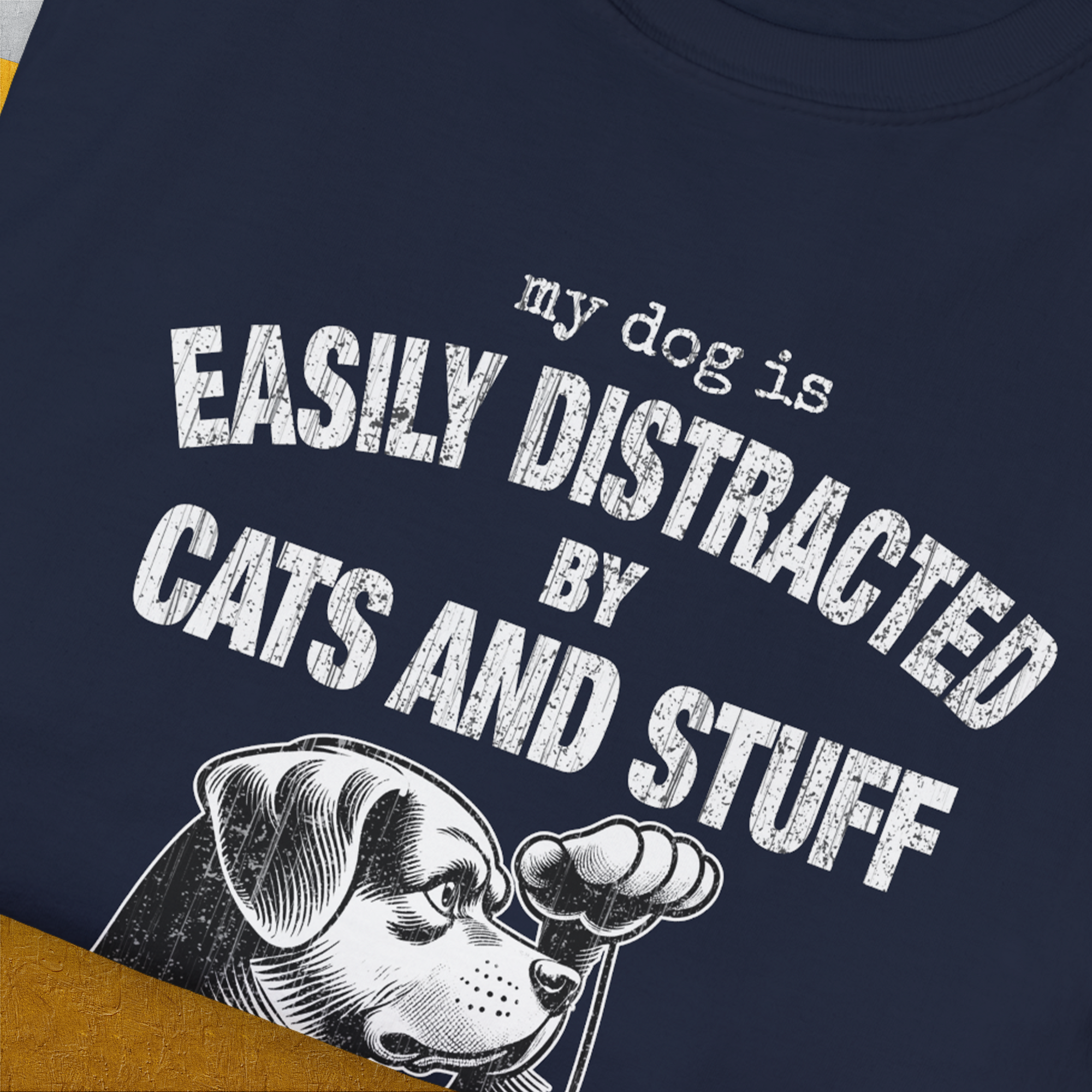 My Dog Is Easily Distracted By - Volume 2: Cats And Stuff, Unisex T-Shirt-, a fun and stylish design for dog lovers from Dog Gang