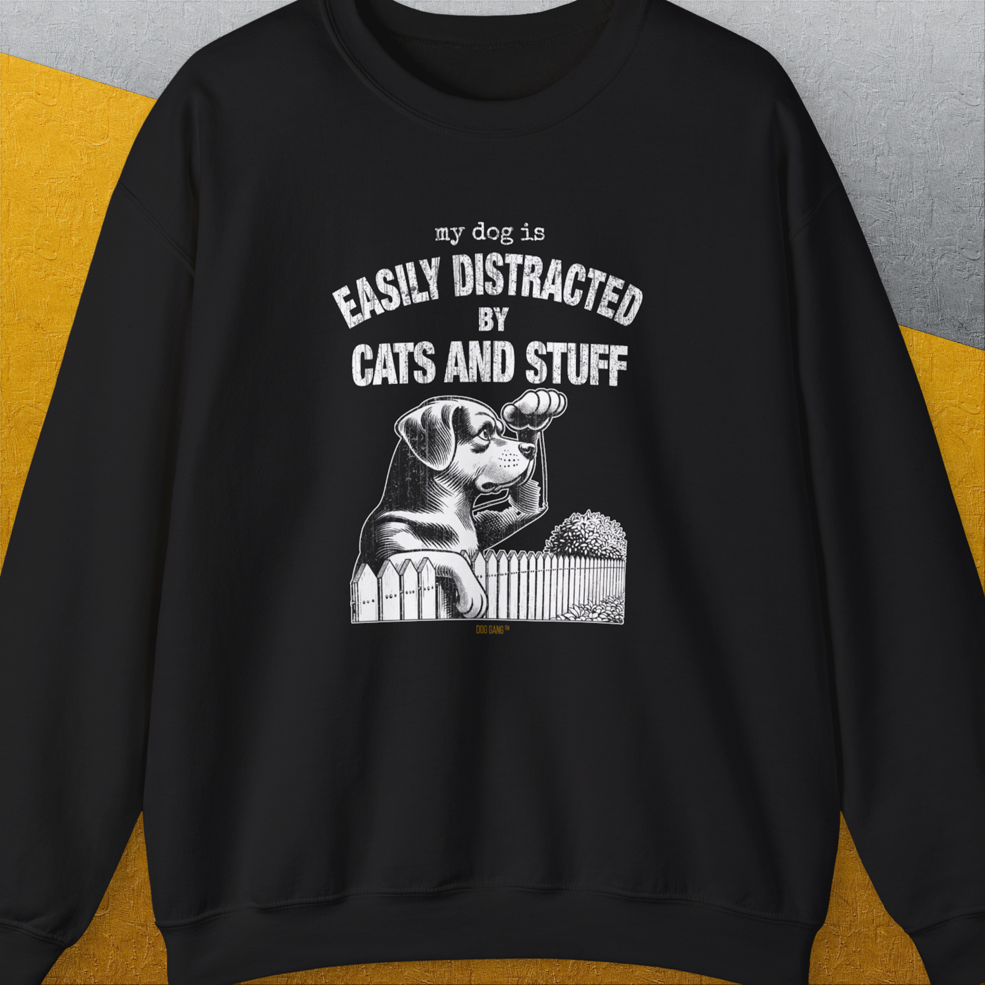 My Dog Is Easily Distracted By - Volume 2: Cats And Stuff, Unisex Sweatshirt-, a fun and stylish sweatshirt design for dog lovers from Dog Gang