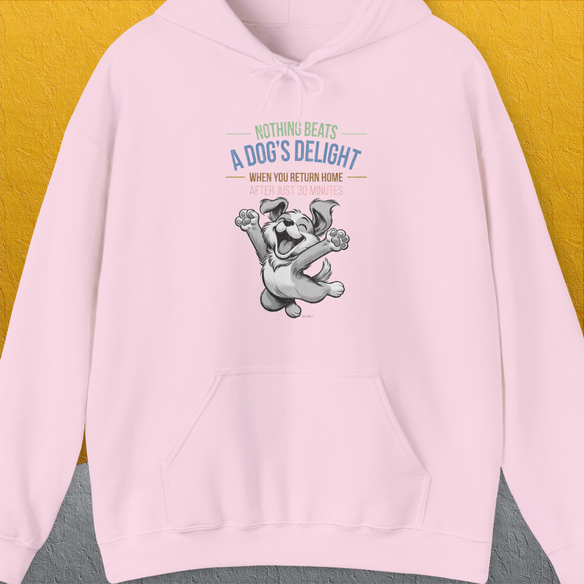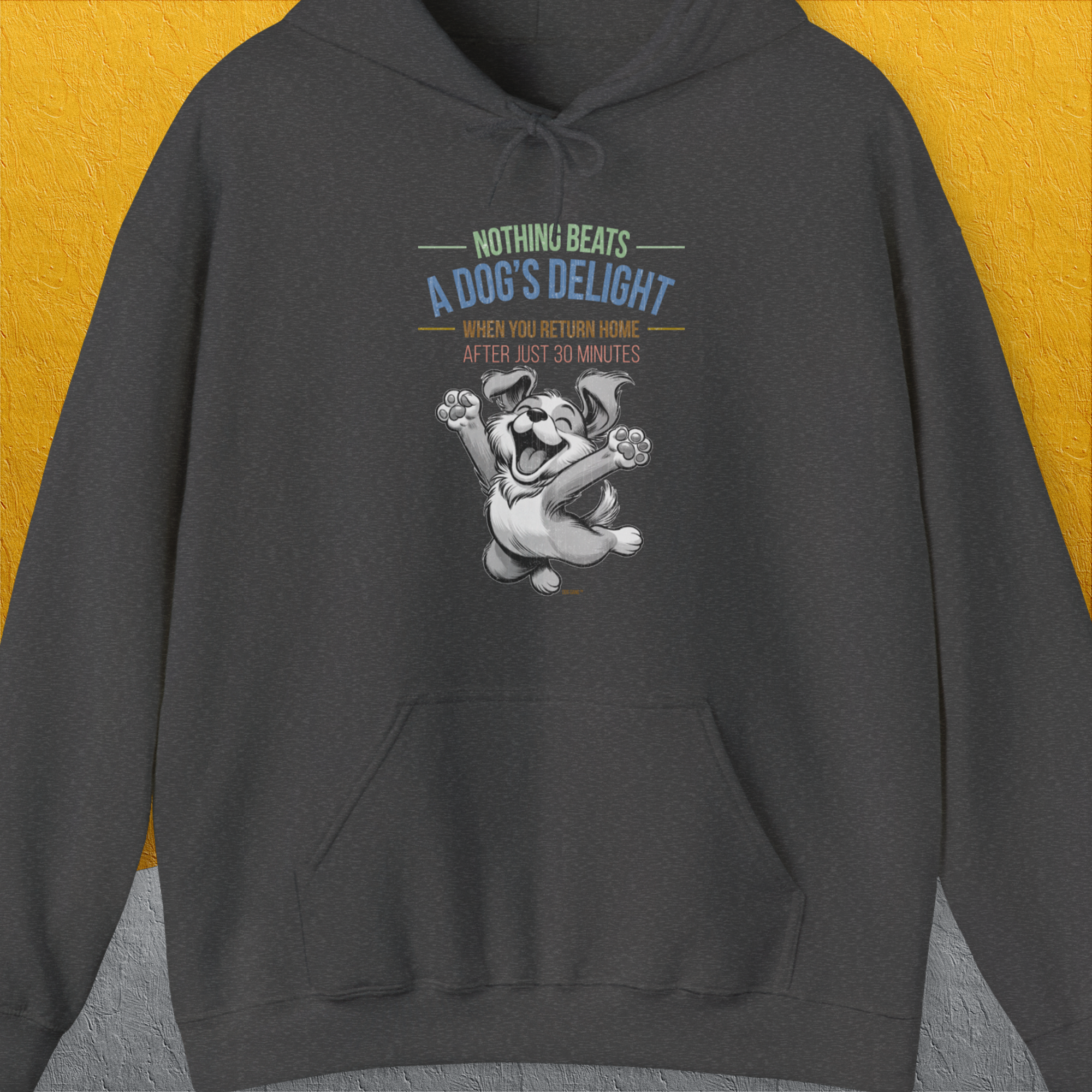 Nothing Beats A Dog's Delight When You Return Home, Volume 1, Unisex Hoodie-funny and stylish. A perfect gift for dog lovers. Shirtdesign by Dog Gang