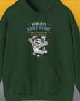 Forest green hoodie features a very happy and cute cartoon dog with the saying, Nothing Beats A Dogs Delight When You Return Home, Volume 1. Perfect for any dog owner! Designed by Dog Gang.