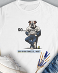 So... Woof? Volume 1, Women's T-Shirt-White. For dog lovers and dog owners. Design by Dog Gang