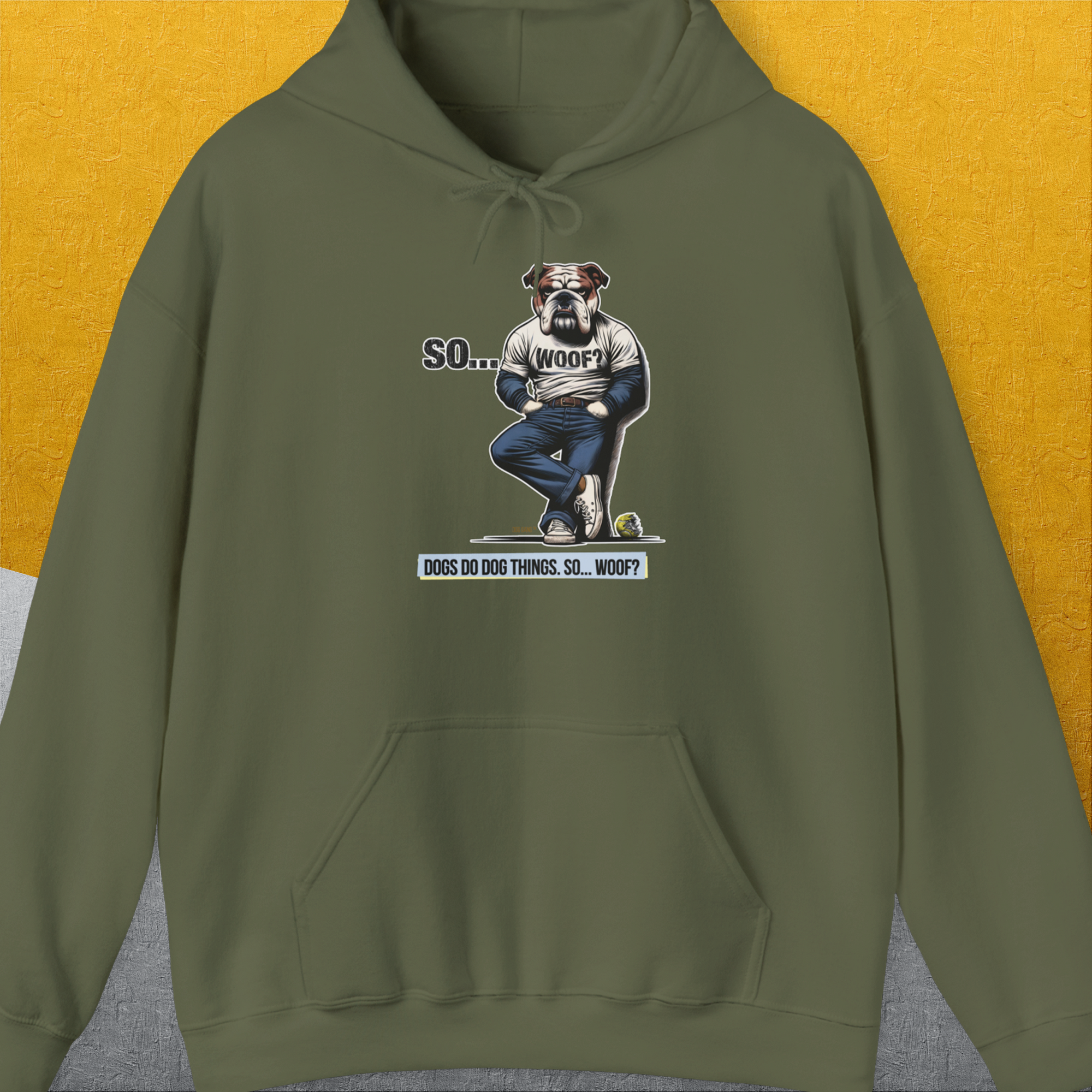 So... Woof? Volume 1, Unisex Hoodie-Military Green, Design by Dog Gang