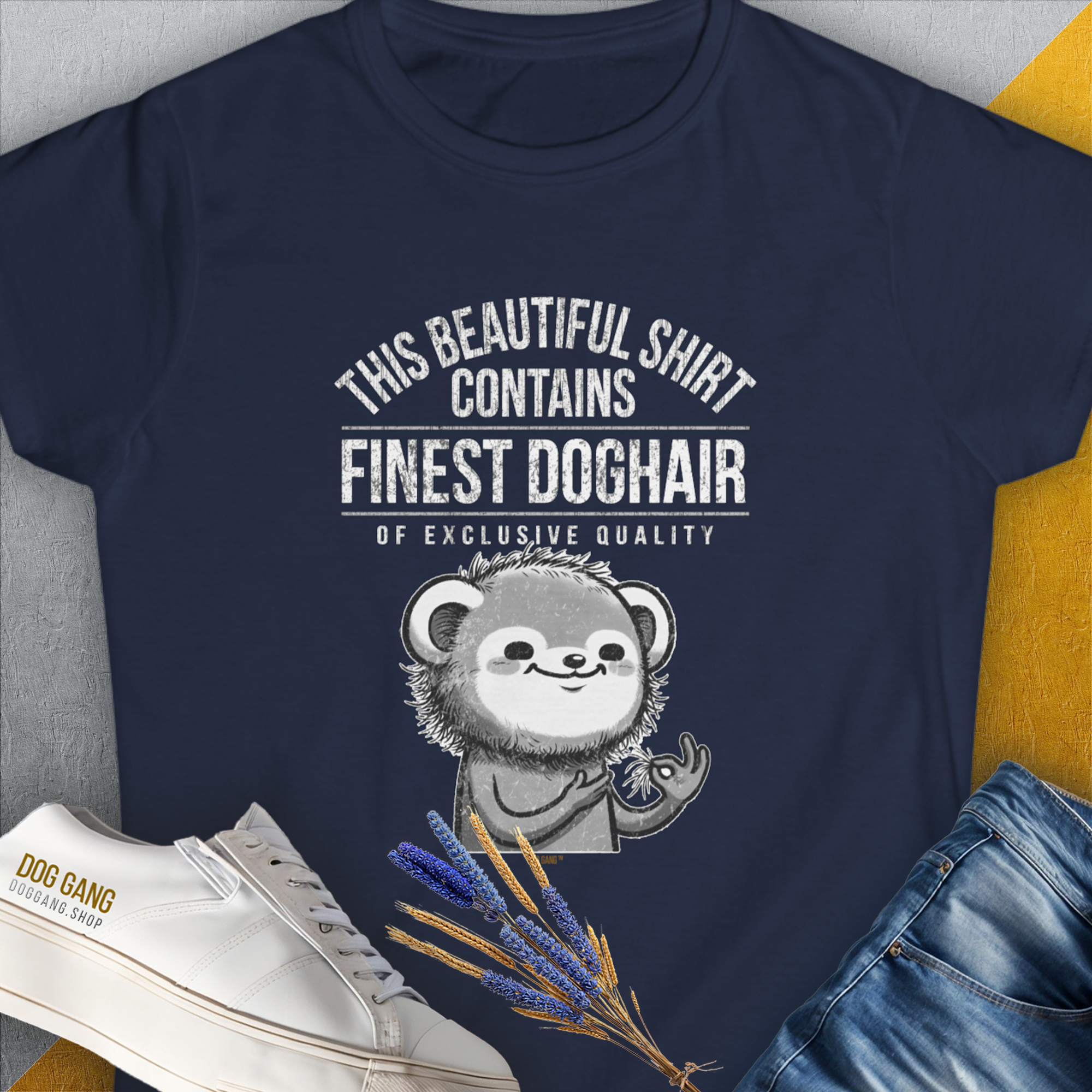 This Beautiful Shirt Contains Finest Dog Hair Of Exclusive Quality, Volume 2, Women's T-Shirt-Navy, a cool and stylish design with a funny saying from Dog Gang